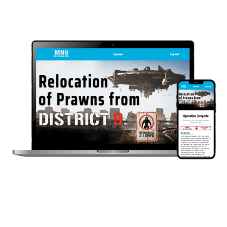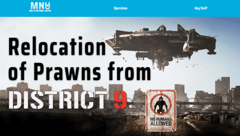 At the time of the original release of the movie District 9, the websites used to advertise the movie were set in-universe. This website follows a news article style to take the viewer into the universe of District 9.